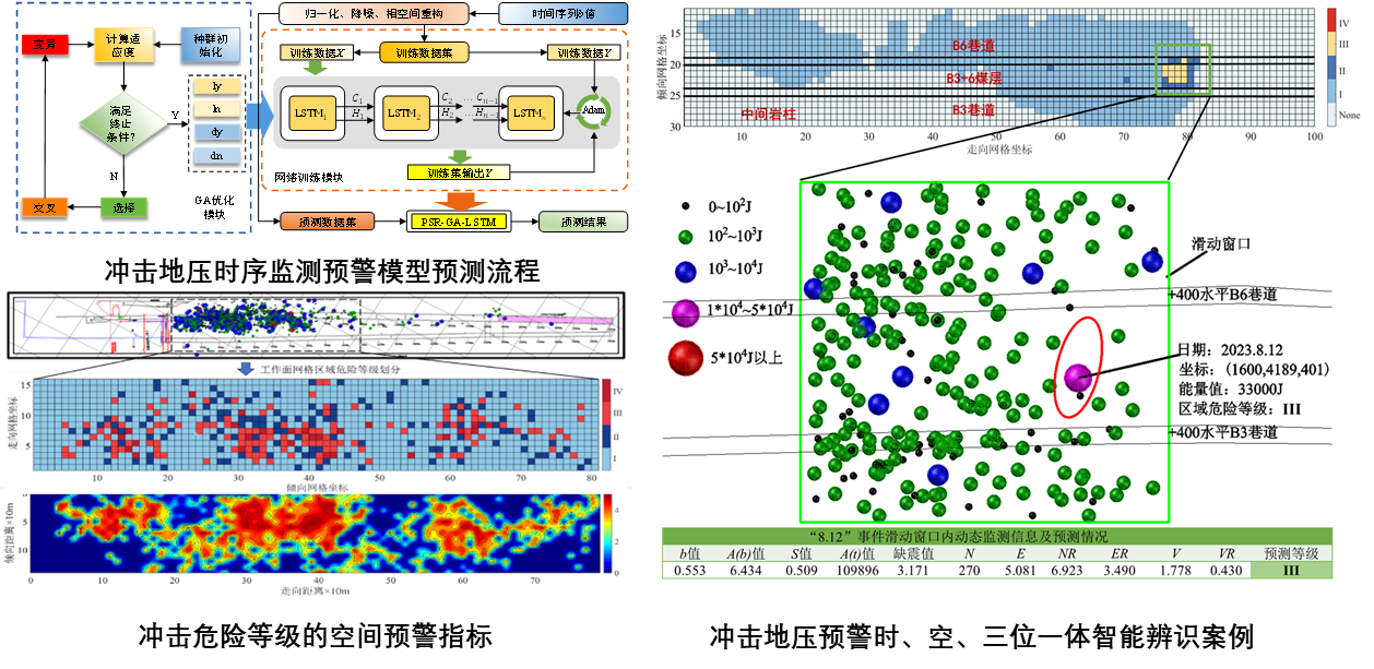 在决策层面构建智能预警模型。引入人工智能方法,团队构建了涵盖长期、中期与短临阶段的层次化冲击危险性评价体系,建立时序演化模型、空间分布模型、能量强度模型,形成“时—空—强”三位一体预警体系。