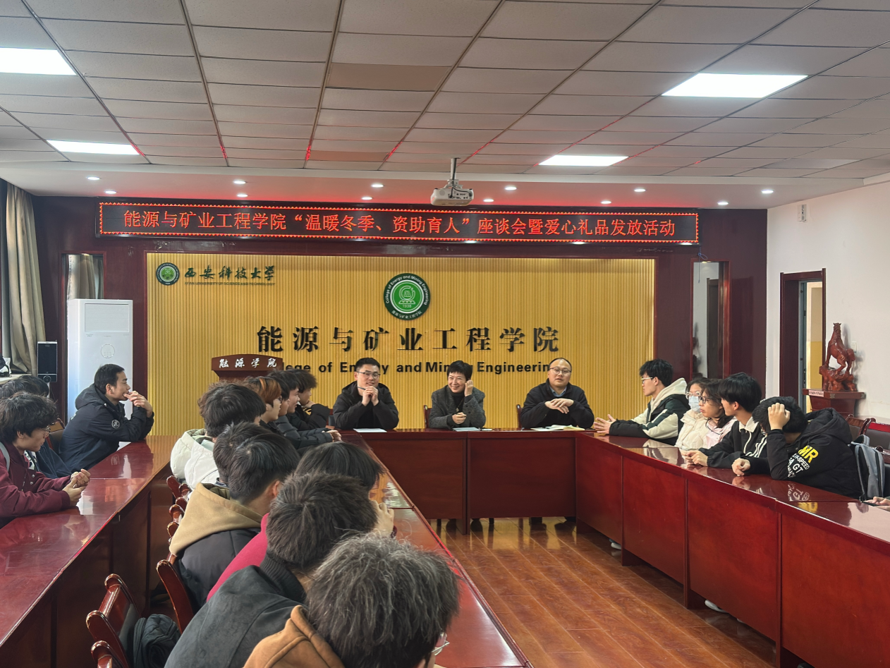 为深入落实资助育人政策,切实关怀学生成长,助力学子安心求学、温暖过冬,12月18日中午,能源与矿业工程学院在14教323会议室举办“温暖冬季、资助育人”座谈会暨爱心礼品发放活动。院党委副书记党雪,2025级辅导员、资助专项负责人吴蒸参加活动,与50余名各年级受助学生代表亲切交流。活动由2022级辅导员耿鹏飞主持。