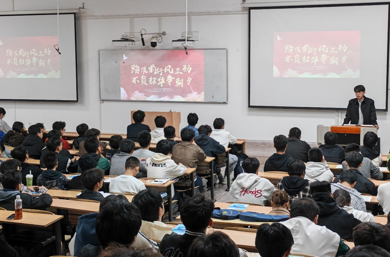 11月4日,我院召开了“榴园追梦”巡讲报告会。邀请了国家奖学金获得者胡盛炫同学做了经验交流。学院党委副书记党雪,2025级辅导员吴蒸及2025级全体新生参加了分享会。